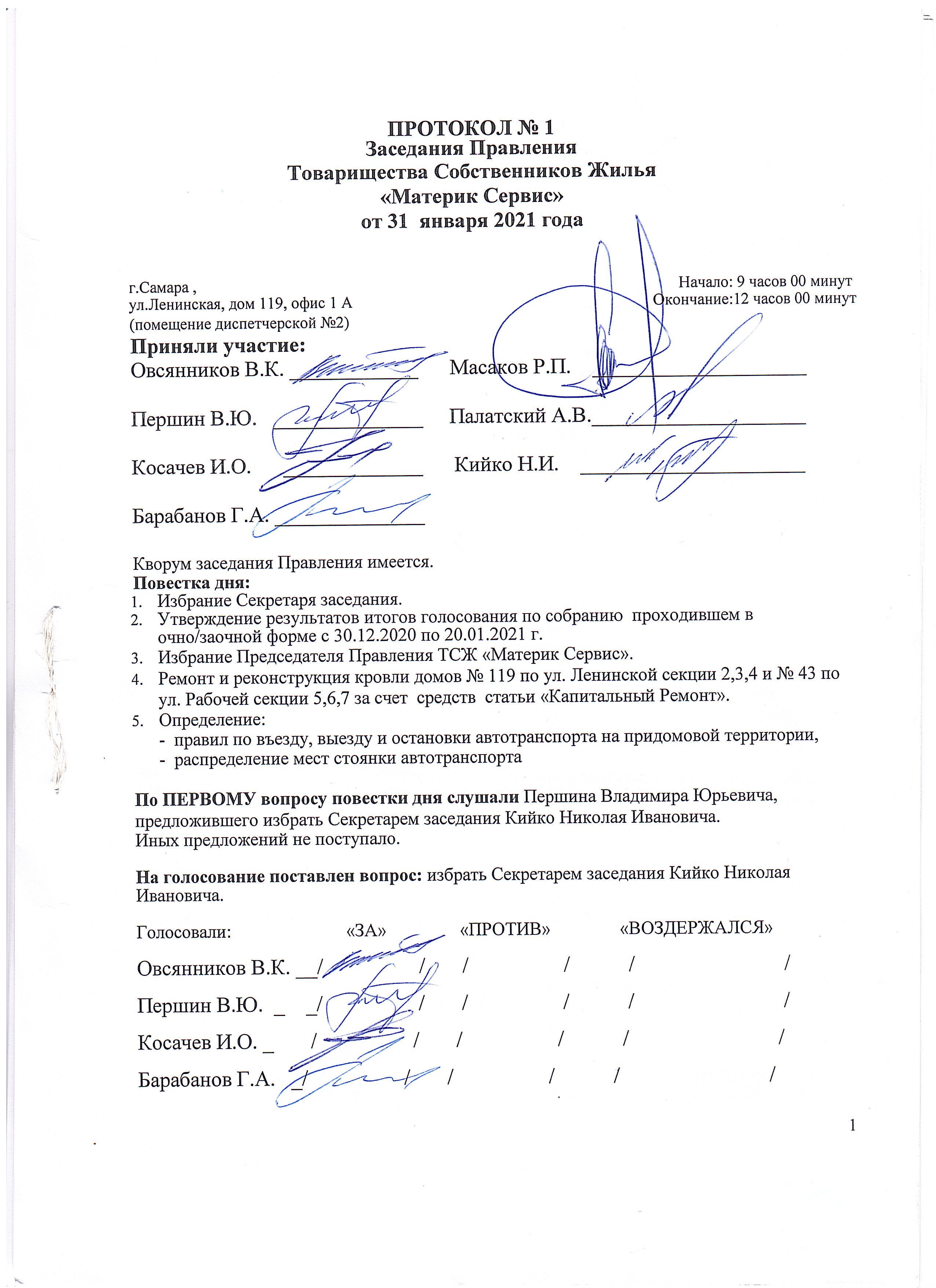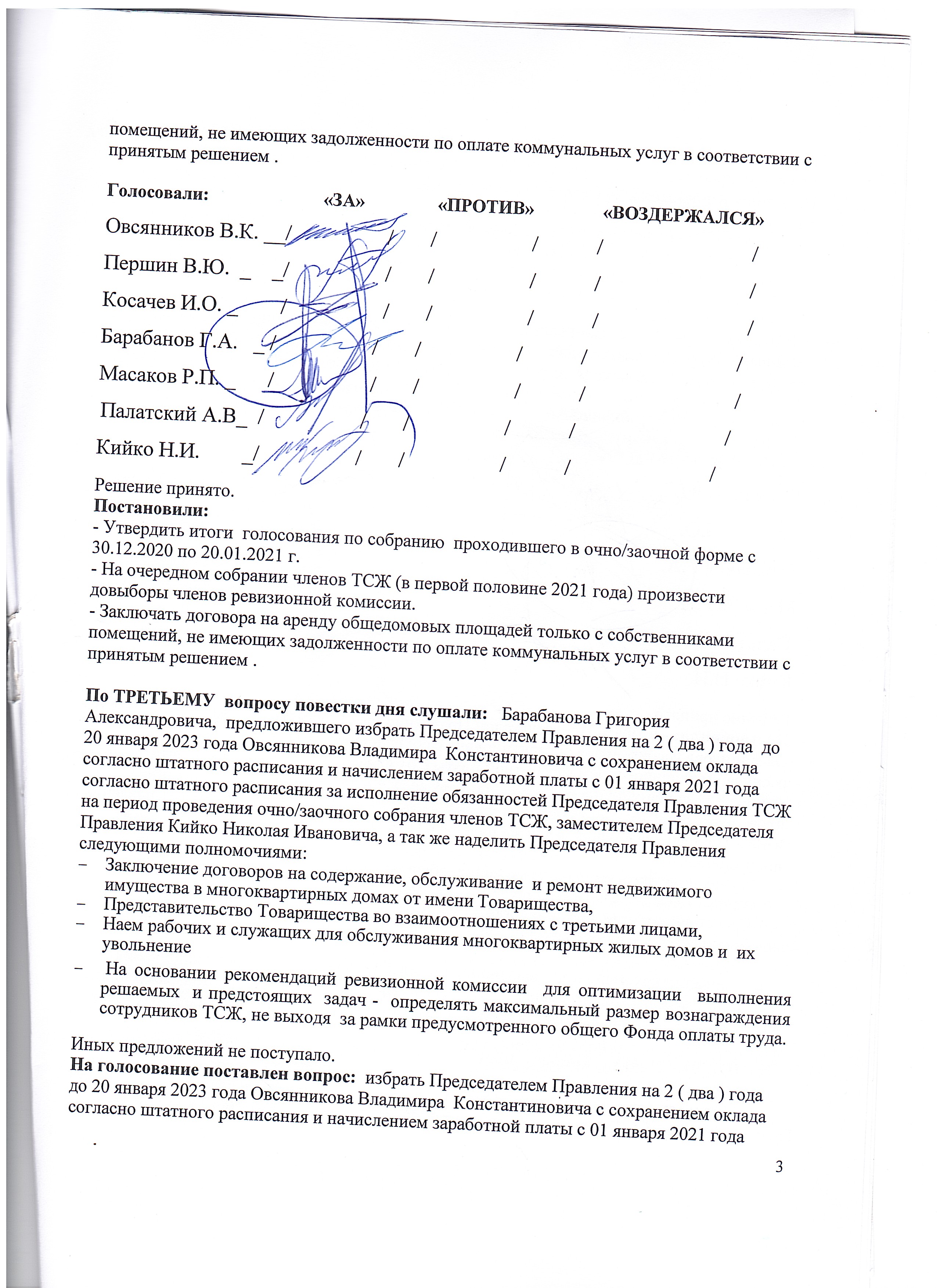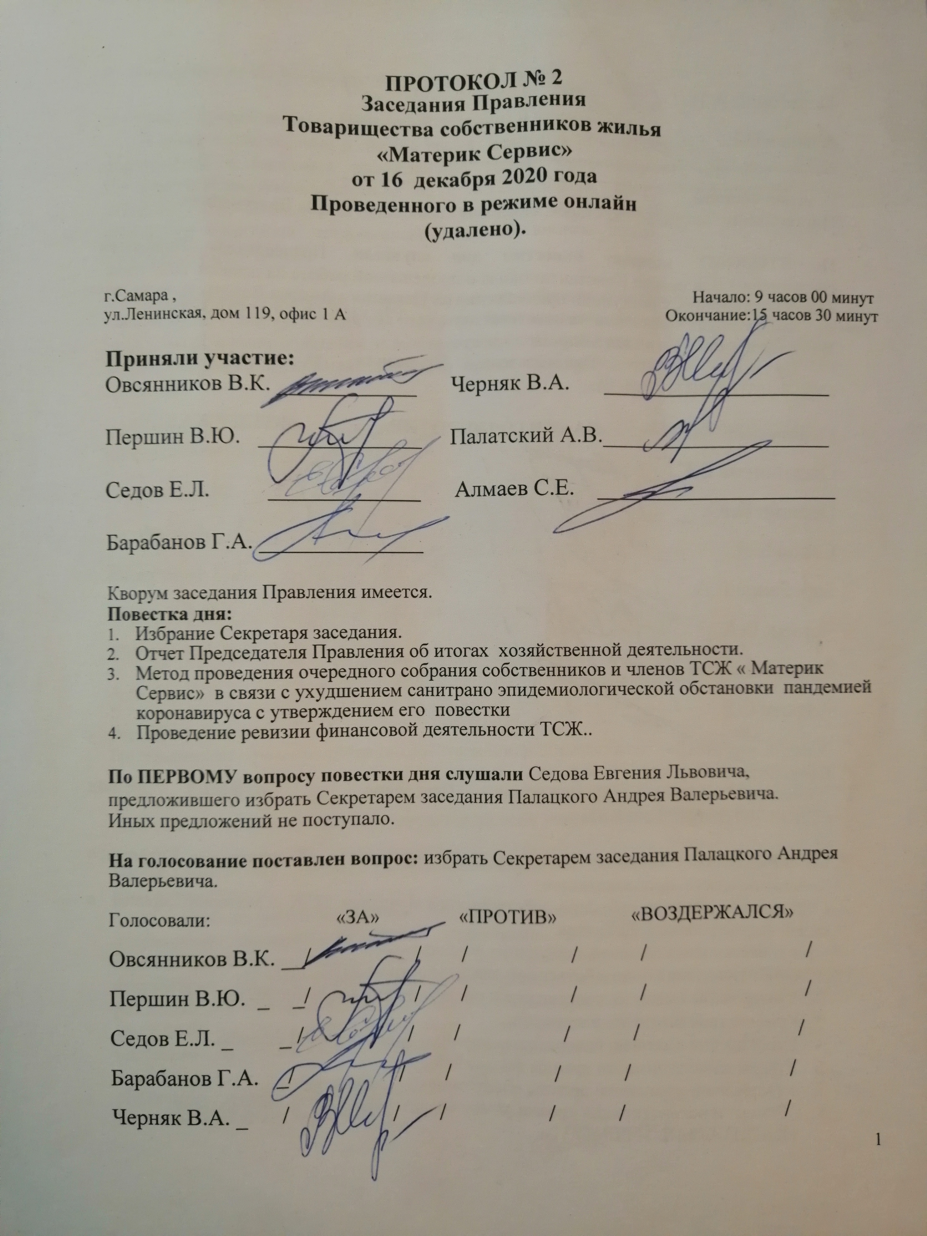 ПРОТОКОЛ ВЫБОРА ПРЕДСЕДАТЕЛЯ НА 2021-2023г