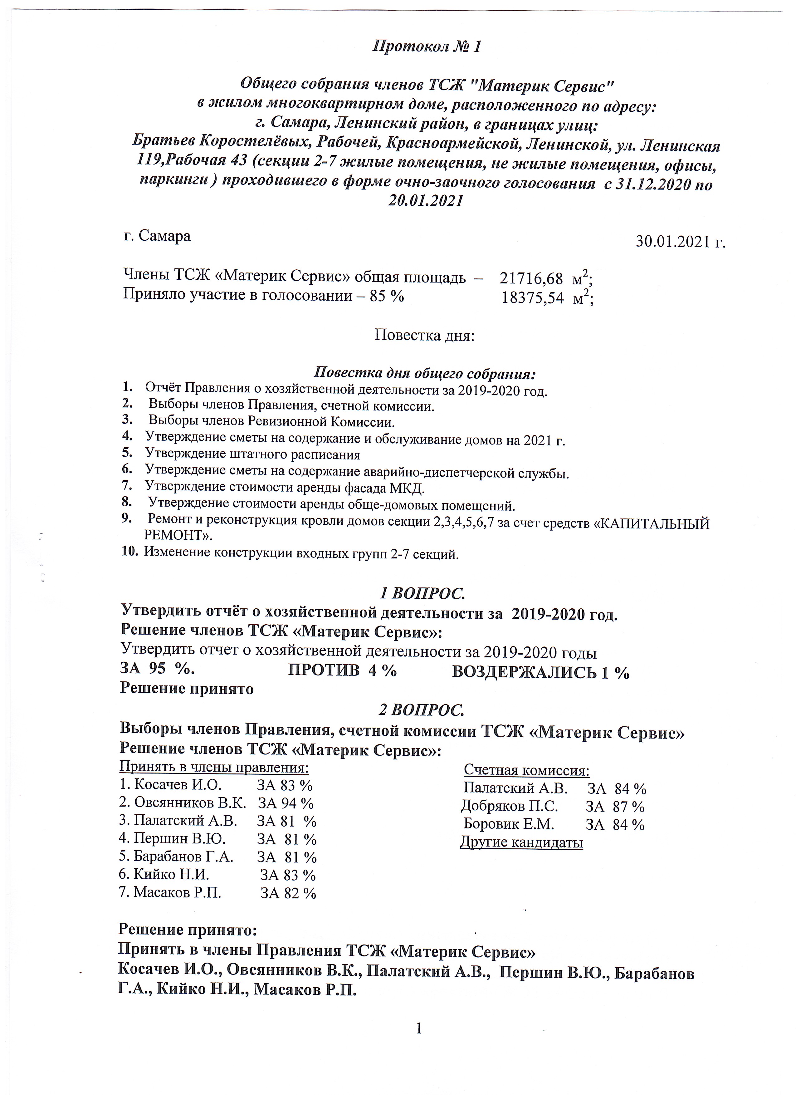 Устав ТСЖ "Материк Сервис"
