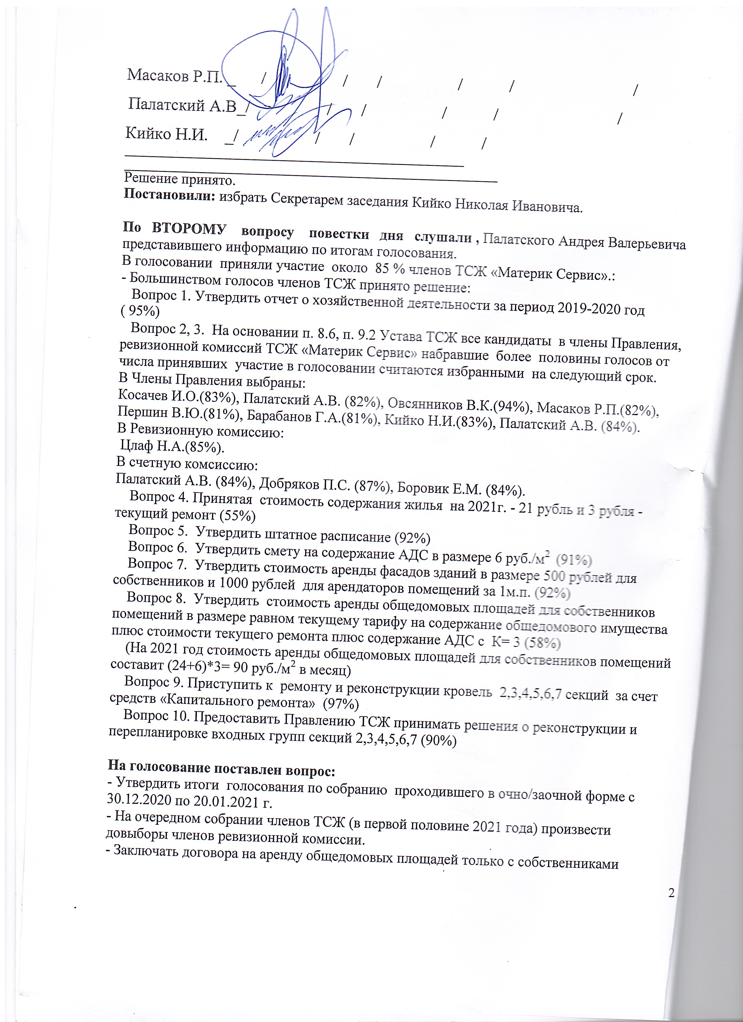 Протокол №2 Заседания Правления от 10.03.2019
