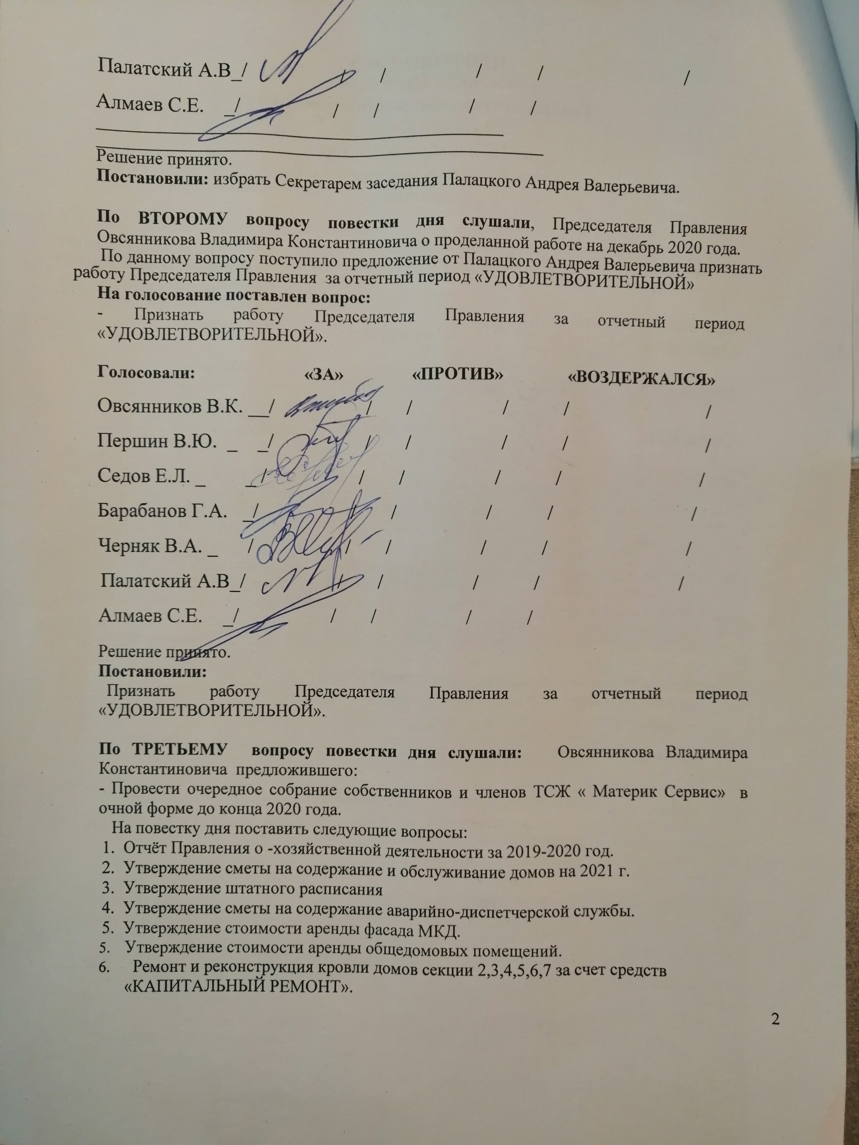 ПРОТОКОЛ ВЫБОРА ПРЕДСЕДАТЕЛЯ НА 2021-2023г